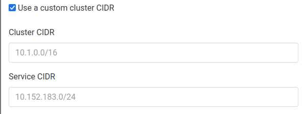 If the instance use a self signed HTTPS certificate, toggle "Allow insecure XO connection". - (Optional). If you want to change the default CIDR for your cluster pods and services, check the Use a custom cluster CIDR box and specify the new IP ranges to use.