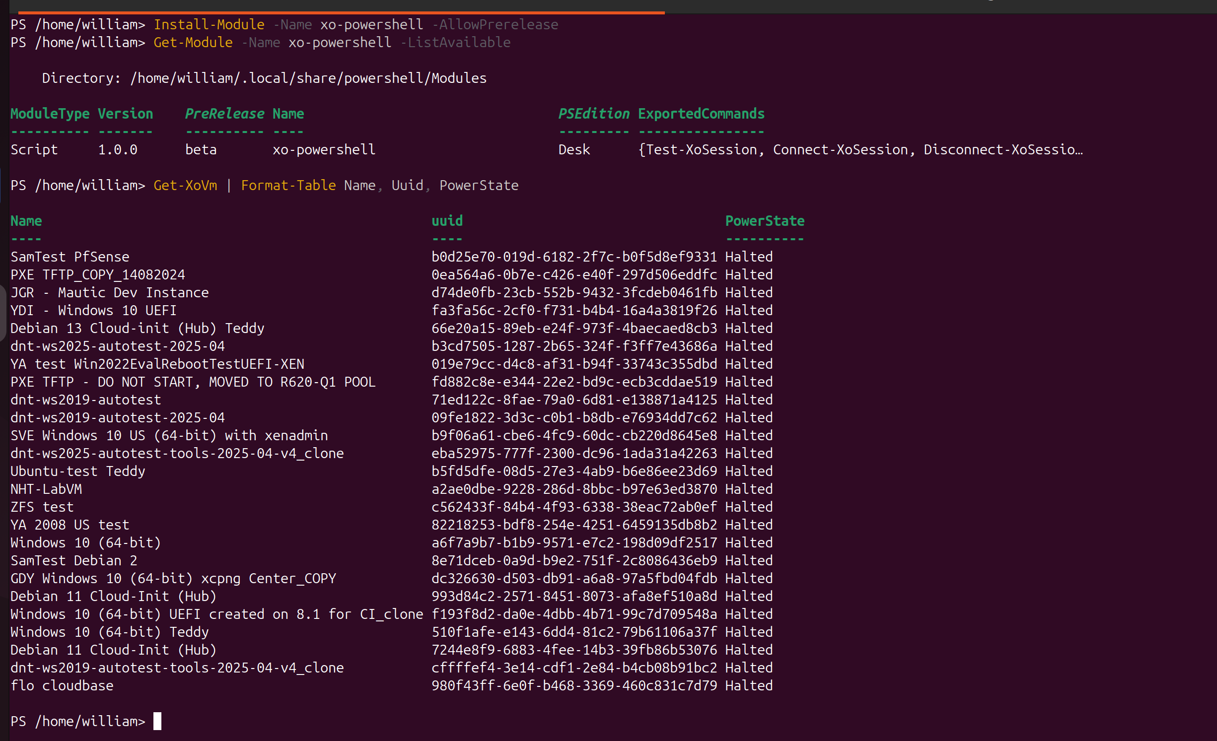 Xen Orchestra (XO) is a powerful tool for managing XCP-ng and XenServer virtualisation environments. However, relying solely on the web interface can result in repetitive manual tasks. For system administrators, particularly those working in Windows-centric environments, PowerShell is the go-to automation tool. The xo-powershell module combines the strengths of these two tools by offering PowerShell's scripting capabilities to interact directly with the Xen Orchestra API. This article presents the most impactful features of the module, which can significantly simplify and accelerate the management of your virtualisation infrastructure.