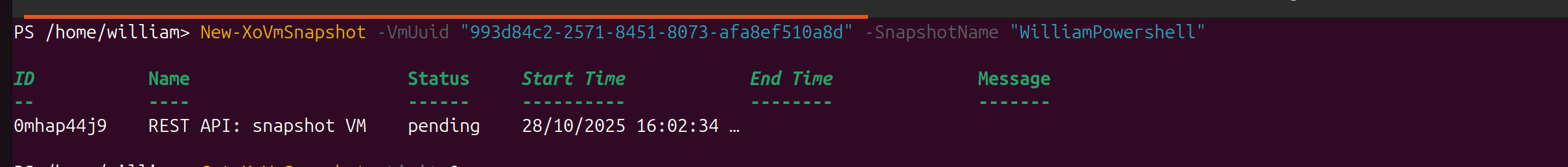 This extended control is particularly useful. The 'Wait-XoTask' command enables the creation of robust scripts that wait for lengthy operations (such as creating a snapshot) to complete before continuing execution. This functionality makes the module a true command-line interface for Xen Orchestra and not just a tool for a few common tasks.