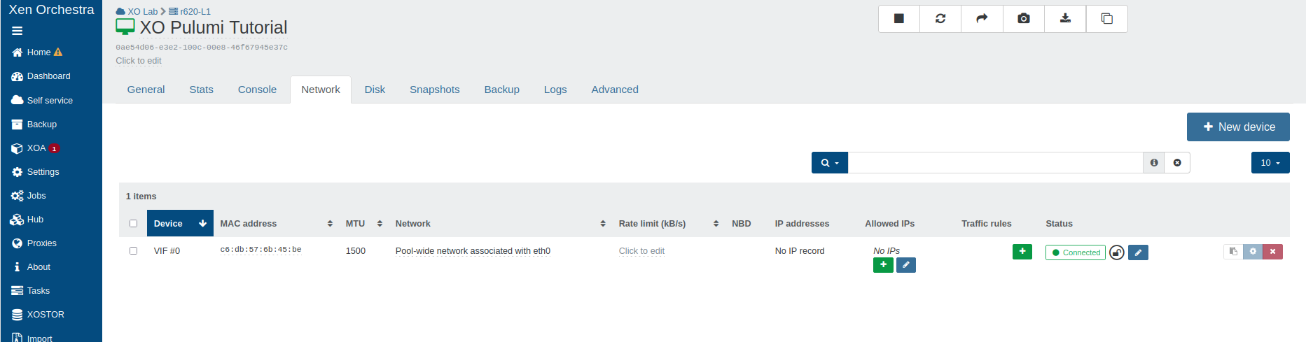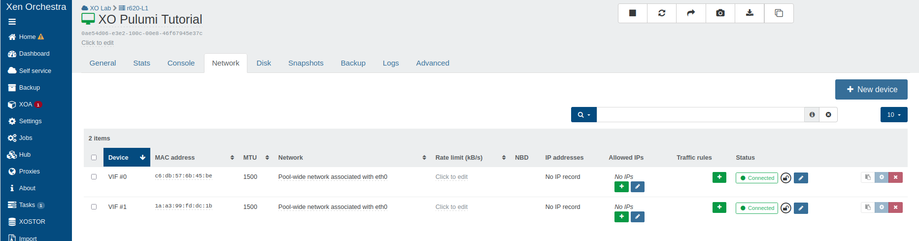 ~ └─ xenorchestra:index:Vm xo-pulumi-tutorial update [diff: ~networks]