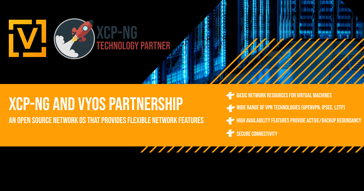 VyOS is now fully compatible with XCP-ng and comes with paravirtual drivers dedicated included in the image for best performances.